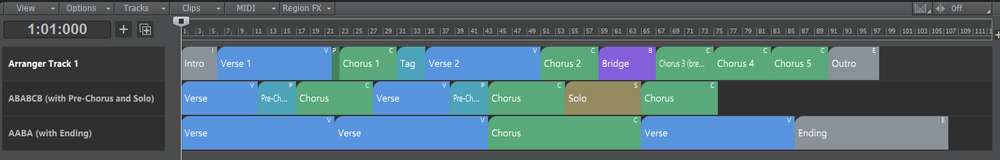 - Быстро присваивайте согласованные названия и цвета разделам, которые выполняют определенные музыкальные функции в песне.