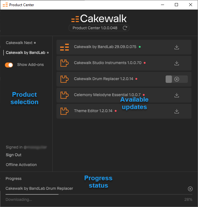 Выпущено новое приложение Cakewalk Product Center. Это приложение станет центральным порталом для установки и управления всеми будущими продуктами Cakewalk. Автономная активация Cakewalk и будущих продуктов доступна через Центр продуктов.