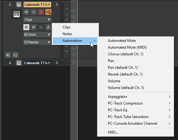Инструментальные треки теперь могут отображать и имеют возможность MIDI автоматизации. Раньше дорожки инструментов отображали только автоматизацию, доступную для раздела аудиовыхода дорожки. Теперь параметры MIDI и автоматизации звука можно установить с помощью фильтра редактирования трека.